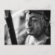 A postcard with a black and white photograph of a statue and a snail.