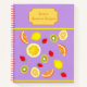 With soft painting illustration of delicious summer fruits, this adorable recipe notebook helps avid cooks organize their best recipes. The front cover features custom text field and cute drawings of colourful lemons, oranges, kiwis, spoons, and strawberries on a light purple background.