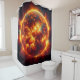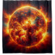 This shower curtain has the sun pictured on it.