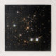 A massive galaxy cluster, about 4.6 billion light years away. Along its borders four bright arcs are visible; these are copies of the same distant galaxy, nicknamed the Sunburst Arc. The Sunburst Arc galaxy is almost 11 billion light-years away and the light from it is being lensed into multiple images by gravitational lensing. The Sunburst Arc is among the brightest lensed galaxies known and its image is visible at least 12 times within the four arcs. Three arcs are visible in the top right of the image, the fourth arc in the lower left. The last one is partially obscured by a bright foreground star, which is located in the Milky Way.