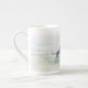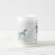Bone china mug with an illustration by Gill Scott called "The swimming lesson". Drawn from real life, a girl has dog on a lead at the edge of the sea trying to encourage it into the water. Gill is a trained fine artist and art teacher and this is the first of a series.