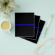 A Thin Blue Line symbolic design on a solid black background. A great gift idea for gatherings, memorial celebrations and remembrance occasions.