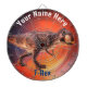 The T-Rex ProfiledInk Dart Board with Bull's-eye! It's the perfect custom dart board to add your name to. Featuring vibrant colour printing, this regulation-size dart board is easily customized with your text. Add a name to this design for a great gift or the perfect addition to your game room, this dartboard will hit its mark! This regulation dartboard measures 18 inches in diameter, and 1 inch high. Includes 6 brass darts (3 American flag dart flights and 3 UK dart flights) Vibrant, full-colour printing and finished with aluminum frame and hanging hook. This product is recommended for ages 14+.