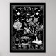 Grunge tarot card design for tea lovers! The Tea. White and black illustration with a teapot pouring water into a tea cup, tea bush, and skeleton.