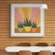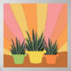 Poster des Trois Agaves et Art numérique téléchargeable Imprimer-Trois plantes du désert dans des pots colorés avec un amusant arrière - plan de coucher de soleil rétro. Inspiré par les magnifiques succulents du Jardin botanique du désert.