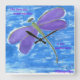 Purple dragonfly on blue background clock. Original art with positive message/ daily reminder to LIVE life!