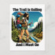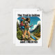 A woman with a backpack hiking the trails through pine trees towards the mountains. Cool graphics for those who love to hike any trails like the Appalachian Trail. Hiking the A.T.