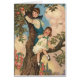 Vintage Children's Illustration showing a boy and girl climbing a tree for apples.