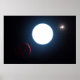 This artist's impression shows a view of the triple star system HD 131399 from close to the giant planet orbiting in the system. The planet is known as HD 131399Ab and appears at the lower-left of the picture. Located about 320 light-years from Earth in the constellation of Centaurus (The Centaur), HD 131399Ab is about 16 million years old, making it also one of the youngest exoplanets discovered to date, and one of very few directly-imaged planets. With a temperature of around 580 degrees Celsius and having an estimated mass of four Jupiter masses, it is also one of the coldest and least massive directly-imaged exoplanets.