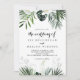This tropical greenery white floral wedding of invitation is perfect for a destination wedding. The design features green palm leaves bouquets with white lovely flowers.