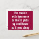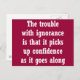 If you're bothered by stupidity (and who isn't?) then you'll appreciate the sentiment behind this humourous line: "The trouble with ignorance is that it picks up confidence as it goes along."