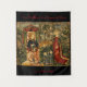 The Two Riddles of The Queen of Sheba Renaissance Tapestry was originally created around 1490 and is an excellent example of Renaissance wall tapestry art. This tapestry makes excellent wall art for any home or bedroom. With a black background to allow the image to "pop" and give any room an authentic middle ages feel easy.
