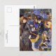 A fine art postcard with the impressionist painting, The Umbrellas (1883) by the French painter Pierre-Auguste Renoir (1841-1919). A bustling street scene in France of Victorian shoppers with umbrellas on a rainy day.