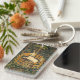 Keychain featuring the medieval tapestry The Unicorn in Captivity (1495-1505). The seventh tapestry in The Unicorn Tapestries—also known as The Unicorn Rests in a Garden—shows a white unicorn with a blue collar sitting inside a fence. Green grass and beautiful flowers surround the unicorn. A fantastic gift for medieval art collectors and fantasy lovers!