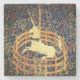 Stone Coaster featuring the medieval tapestry The Unicorn in Captivity (1495-1505). The seventh tapestry in The Unicorn Tapestries—also known as The Unicorn Rests in a Garden—shows a white unicorn with a blue collar sitting inside a fence. Green grass and beautiful flowers surround the unicorn. A fantastic gift for medieval art collectors and fantasy lovers!