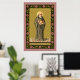 Servant of God, Venerable, Blessed, Saint-- in the modern process of canonization, a candidate for sainthood rises through the ranks. However, the epithet ‘Venerable’ given to St. Bede has less to do with process than with the esteem with which he was regarded by his near contemporaries. Born in 672 or 673 of a noble house in North East England, Bede, whose name in Old English may mean ‘prayer’, was sent to the Benedictine monastery of St. Peter at Monkwearmouth at the age of seven to be educated perhaps in preparation for the religious life. Though Bede moved to St. Paul’s at Jarrow, the second house of the double monastery, he never left the Benedictine life. At Jarrow, he lived out his days as a priest in prayer, in study, and, above all, at writing. He died of natural causes in 735. + Today, Bede is best known for his Ecclesiastical History of the English People which has earned him the title of ‘Father of English History.’ However, he was a polymath. A skilled linguist and translator, he made the writings of the Early Church Fathers accessible in English. He wrote Chronicles, Biblical commentaries, lives of the saints, grammars, and homilies. His interest in computus (the dating of historical and ecclesiastical events especially Easter) popularized the B.C./A.D. system still in use today. He even wrote poetry in both Latin and vernacular English. For his body of theological works, Bede was declared a Doctor of the Church in 1899, the only native-born Englishman to hold the title. + The image here is a simple one: Garbed in the loose, cowled, Benedictine habit with its typically long, wide sleeves, a bald and gray-bearded Bede raises his right hand in a speaking gesture and holds an open book from which he preaches in his left. + St. Bede the Venerable is patron of lectors. + Feast: May 25 + Image Credit (P 008): Antique image of S[t] Bede. The Venerable. C[onfessor] from a late 19th-century devotional print in chromoxylography, originally published by Friedrich Pustet, Regensburg, New York, and Cincinnati. From the designer’s private collection of religious ephemera.
