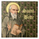 Servant of God, Venerable, Blessed, Saint-- in the modern process of canonization, a candidate for sainthood rises through the ranks. However, the epithet ‘Venerable’ given to St. Bede has less to do with process than with the esteem with which he was regarded by his near contemporaries. Born in 672 or 673 of a noble house in North East England, Bede, whose name in Old English may mean ‘prayer’, was sent to the Benedictine monastery of St. Peter at Monkwearmouth at the age of seven to be educated perhaps in preparation for the religious life. Though Bede moved to St. Paul’s at Jarrow, the second house of the double monastery, he never left the Benedictine life. At Jarrow, he lived out his days as a priest in prayer, in study, and, above all, at writing. He died of natural causes in 735. + Today, Bede is best known for his Ecclesiastical History of the English People which has earned him the title of ‘Father of English History.’ However, he was a polymath. A skilled linguist and translator, he made the writings of the Early Church Fathers accessible in English. He wrote Chronicles, Biblical commentaries, lives of the saints, grammars, and homilies. His interest in computus (the dating of historical and ecclesiastical events especially Easter) popularized the B.C./A.D. system still in use today. He even wrote poetry in both Latin and vernacular English. For his body of theological works, Bede was declared a Doctor of the Church in 1899, the only native-born Englishman to hold the title. + The image here is a simple one: Garbed in the loose, cowled, Benedictine habit with its typically long, wide sleeves, a bald and grey-bearded Bede raises his right hand in a speaking gesture and holds an open book from which he preaches in his left. + St. Bede the Venerable is patron of lectors. + Feast: May 25 + Image Credit (P 008): Antique image of S[t] Bede. The Venerable. C[onfessor] from a late 19th-century devotional print in chromoxylography, originally published by Friedrich Pustet, Regensburg, New York, and Cincinnati. From the designer’s private collection of religious ephemera.