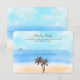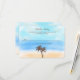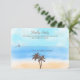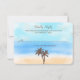 The design features tropical palm trees on a beautiful watercolor background of soft sand, cool blue sea and a stunning turquoise sky. Perfect for any beach celebration!