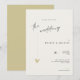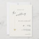 This minimal and elegant wedding invitation is perfect for a modern wedding. Design features an handwritten font and modern minimalist design with a golden heart. You can change the names, wedding location and date, and other details, click «Personalize».