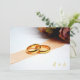 The wedding invitation with gold rings and rose boquet, ideal for classic and romantic couples.