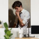 This striking portrait captures a candid moment of deep introspection and vulnerability. The piece features a young man dressed in a white shirt with rolled-up sleeves and a loosened tie, suggesting the end of a long day or a formal event. His downward gaze and hand-to-mouth gesture convey a sense of exhaustion, anxiety, or profound thought. Rendered in a realistic style, the artwork utilizes dramatic lighting (chiaroscuro) to cast a looming shadow against the textured, neutral background, emphasizing the subject's isolation and emotional state.