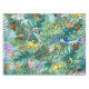 Blue sky and green foliage where fairies have hidden within a bold floral splendour and where butterflies and birds have a party