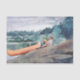 This design features a watercolor painting by the American artist Winslow Homer (1836–1910). It shows a solitary figure, a hunter or guide, relaxing in a wilderness landscape with a pipe in his hand. The man is resting on rocks with his canoe, in front of a large lake. There is a forest of trees in the background. The painting captures a moment of quiet contemplation, as well as the ruggedness and solitude of the American spirit. The figure of the guide is positioned slightly off-centre, emphasizing the vastness of the surrounding wilderness and creating a sense of isolation and self-reliance. The entire scene speaks to the romanticized idea of the American frontier and the allure of an untamed landscape. The original artwork was painted in 1895.