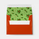 Happy Holly Days Pattern: Illustrated bunches of holly (spiky leaves, bright red berries, and all) scattered over a bright green background. Here, the pattern is the lining of this bright red envelope.