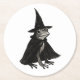 The Witch Frog – Ink Brush Halloween Design on Round Paper Coaster