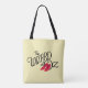 Totally thrilled with this bag. The material is thick and durable (this is my third purchase of this tote bag). The printing turned out amazing. The bright red was just as bright as it is on the computer. So impressed with this bag.