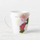 Beautiful inspirational latte mug with a printed image of painted red and white roses. This mug has the Scripture of Isaiah 40:8. The grass withers, flowers fade, but the word of God will stand forever.