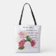 Beautiful inspirational tote bag with a printed image of painted red and white roses. This mug has the Scripture of Isaiah 40:8. The grass withers, flowers fade, but the word of God will stand forever.