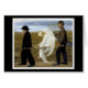Beautiful 1903 oil painting by Finnish symbolist painter Hugo Simberg entitled, "The Wounded Angel". Two young boys, one dressed in black, wearing a hat, and one wearing a brown jacket, directly gazing at the viewer, carrying a wounded angel on a stretcher, her eyes bandaged and wing bloodied.