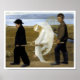 Beautiful 1903 oil painting by Finnish symbolist painter Hugo Simberg entitled, "The Wounded Angel". Two young boys, one dressed in black, wearing a hat, and one wearing a brown jacket, directly gazing at the viewer, carrying a wounded angel on a stretcher, her eyes bandaged and wing bloodied.