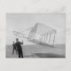 This is a vintage photograph of the Wright brothers performing a test flight.