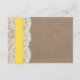 The yellow sand dollar beach wedding collection is a stunning design featuring a lovely rustic burlap effect background with a romantic vintage white lace effect trim finished with a stunning sand dollar and yellow ribbon.