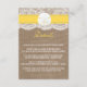 The rustic sand dollar beach wedding collection is a stunning design featuring a lovely rustic burlap effect background with a romantic vintage white lace effect trim finished with a stunning sand dollar and yellow ribbon. These Detail Cards can be personalized for your special occasion and would make the perfect matching insert for a wedding suite, bridal shower, engagement party, birthday party and much, much more. These cards can be used to create Detail Cards, Guest Information Cards, Accommodation Cards, Direction Cards, Gift Registry or Wishing Well Cards as well as Ceremony and Reception Cards. Matching wedding items can be found in the collection.