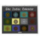 Each page of this calendar features a zodiac themed mandala with various gemstones surrounded by the symbol for the sign, the constellation, and the alchemical symbol for the element among filigree and weaves.