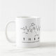 Thea spelled out in amino acids as T H E A (Threonine Histidine Glutamic acid Alanine) on a mug for the scientist in you.