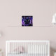 This whimsical poster features a friendly cat with vibrant green eyes outside looking at the beautiful night sky. Finished as a mixed media art print.