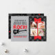 Unique et plein du style, cette carte orientée de collage de photo de Noël de rock de tintement du carillon est parfaite pour des rockstars grands et petits. Comporte la typographie mélangée, une guitare électrique, et le texte fait sur commande qui peut être personnalisé. Un motif des guitares, des étoiles, des cloches et des coeurs apparaît de l'arrière. Couleurs de conception : blanc, gris, charbon de bois, noir, et rouge.