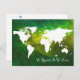Envoyez une bonne nouvelle à quelqu'un avec la conception d'une carte blanche du monde sur une aquarelle verte, un petit avion, et une citation personnalisée "Voyager c'est vivre"