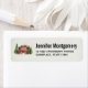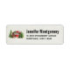 Étiquettes de adresse avec un thème de Noël mignon et fantaisiste. Une caravane cosy décorée pour Noël entre quelques pins.