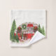 Serviette avec un thème de Noël mignon et capricieux. Une caravane cosy décorée pour Noël entre quelques pins.