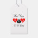 Thème Las Vegas Merci les étiquettes cadeaux de mariage. Jouer carte convient à la conception avec monogrammed nom initiales et date. Icône Coeurs et pique avec date. Conception sympa pour Vegas jeu ou poker mariage thématique. Élégant do-it-yourself présente des accessoires étiquettes pour remercier quêtes et amis. Modèle de typographie de script élégant. Couleurs rouges et noires.