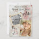 Antique paper in pink and mushroom beige watercolor with 2 vintage frames for photos then and now - combined with modern calligraphy offers a real sense of old to new - on the "then" photo we used Zazzle's Photo Filter 'Black and White' [ this is found when you click customize this further] and highlight the photo option for different filters. Replace the photos with your own - Customize each text option for the perfect then and now graduation party invitation. Now, how fun is that? If you need help please feel free to contact me via the store contact button - I would be happy to help you.
