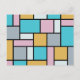 Along with Piet Mondrian, artist and architect Theo van Doesburg helped co-found the journal De Stijl in 1917, along with the Neo-Plasticism art movement. This digitally restored piece consists of square and rectangular blocks of cyan, pink, gold, grey and white surrounded by black lines. The pink and blue give this a vintage look that would work well with a retro 50's style decorating theme.