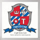 Knights style shield monogram T art name poster perfect for a boys bedroom or playroom in shades of red, blue and grey. Personalize with your child's own name and name meaning for a truly personalized touch to your child's bedroom or nursery, this example is for the name Theodore A gift from God. Kind, instinctive and magnetic. Poster print ideal for a gift to a new baby boy, for a christening, baby naming or baby shower gift. Unique shield drawing, graphic art and design by Sarah Trett. www.sarahtrett.com for www.mylittleeden.com