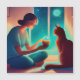 Une femme est assise sur le sol, tenant une bougie dans la main, avec un chat assis en face d'elle. Ensemble, ils partagent une connexion secrète et spirituelle, comme si le chat était son thérapeute. Cette oeuvre d'art fantasque et humoristique de l'imaginaire, créée par Lumirala et Magic Media AI, capture le lien unique entre la femme et son amie féline. Disponible en différentes tailles, cette carte magnétique est parfaite pour ajouter une touche d'enchantement et d'humour à votre message.C'est une carte idéale pour les amoureux de les chats, les amateurs d'art et tous ceux qui apprécient les aspects mystiques et magiques de la vie.