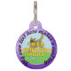 A simple Therapy Dog Identifier - One side has a placeholder for your dog's image, and a circle of of text for you to personalize around your dog's photo. The other side is a beautiful purple and blue gradient background with a grey dog's paw. The text "Registered Therapy Dog" overlaid on an image of the dog's paw. Customize by adding your dog's or group name.